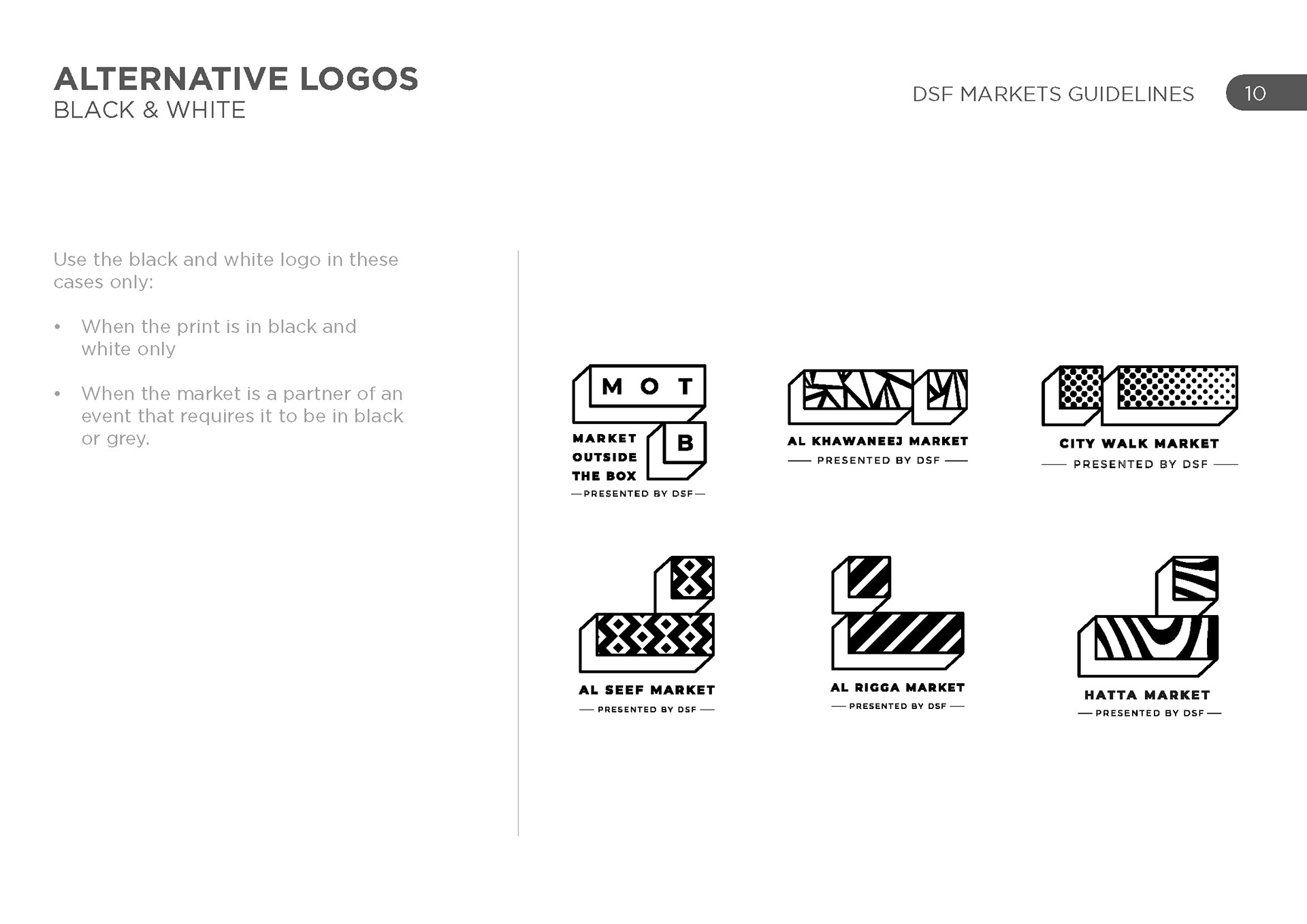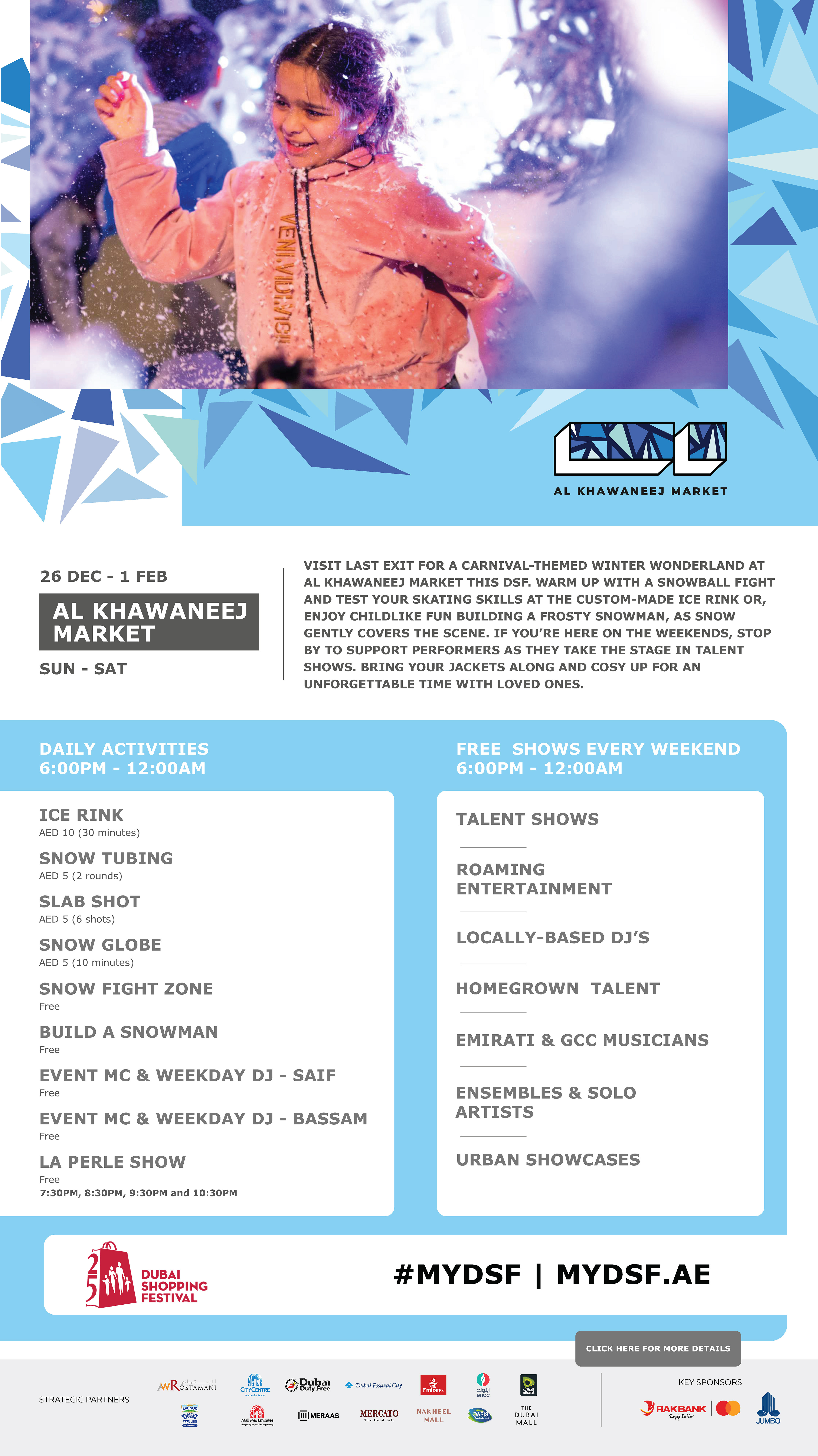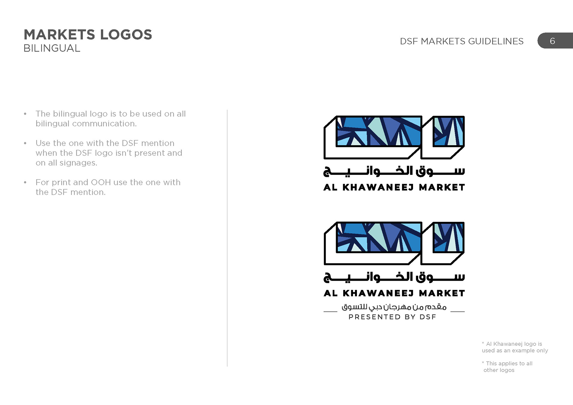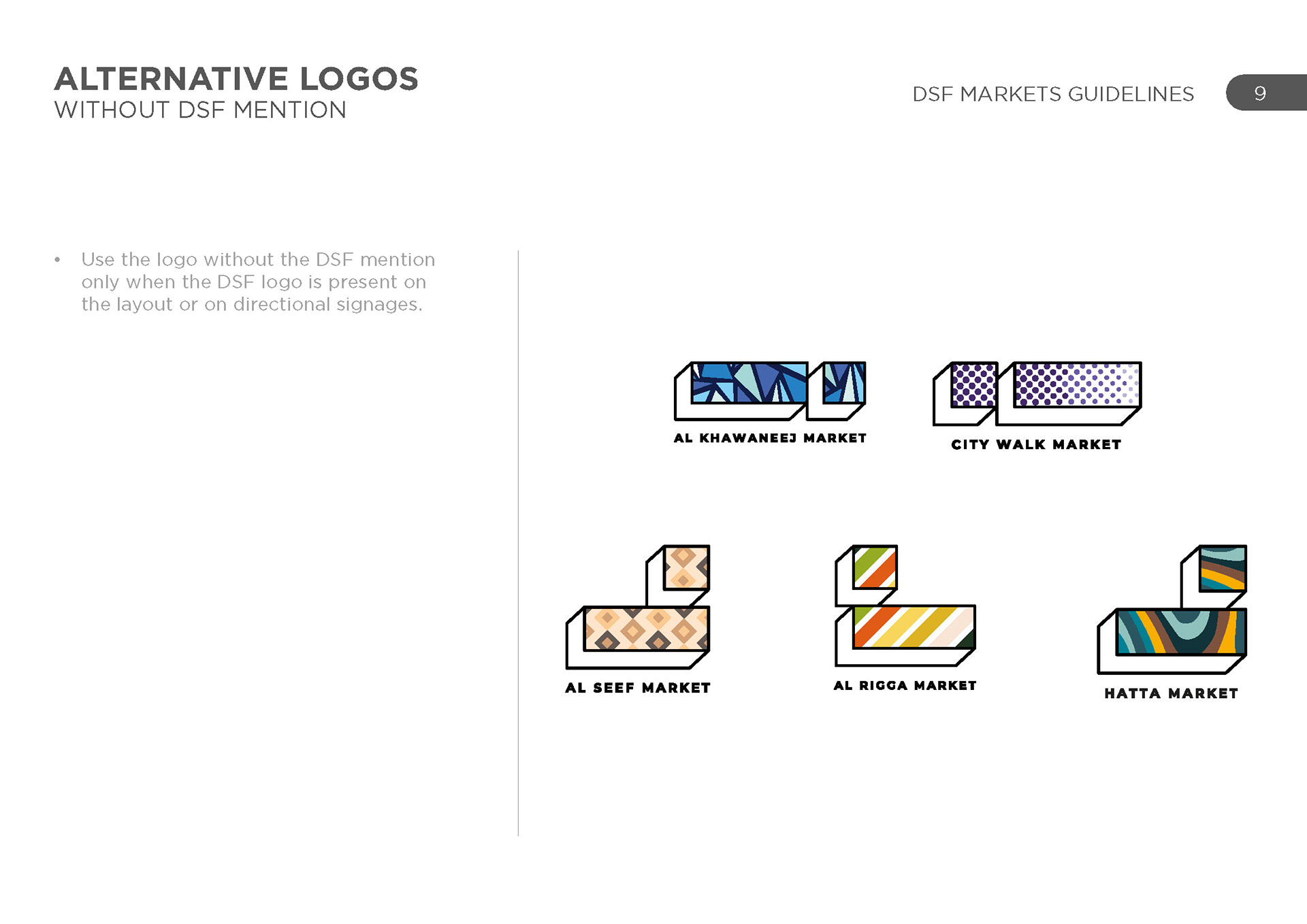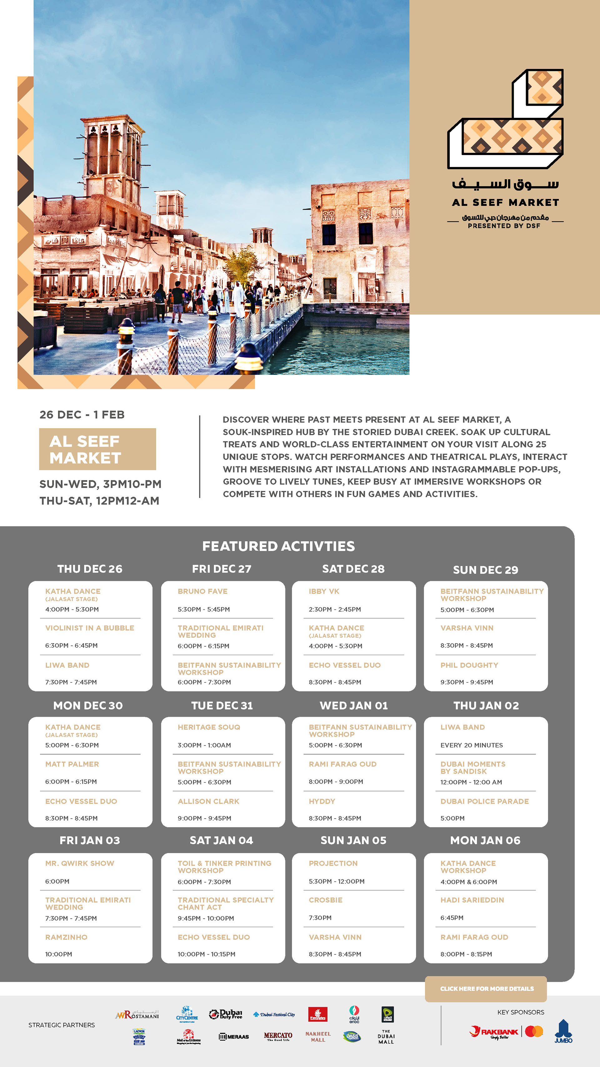 DSF markets was a group of various activities across the UAE in various locations, each with their own unique identity and geography. The challenge was to represent each one uniquely and create a cohesive set of schedules for each one.