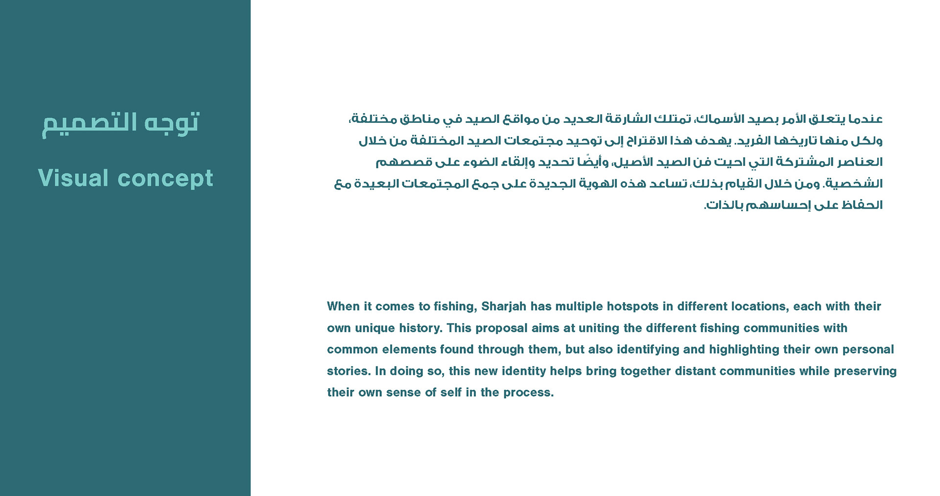 This was a proposal for Sharjah's five different fishing society's. The challenge was to unify to the the visual identity of all five locations while also giving them their own unique treatment.